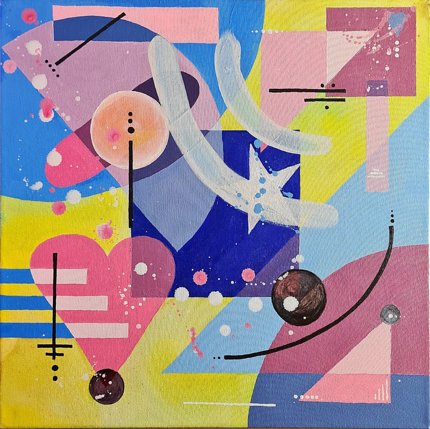 Resolving the style developed in the Sweet Series, these paintings come together intuitively; internally influenced by the refinement of my identity and sense of self, and externally by my continued studies into universal consciousness and unity.